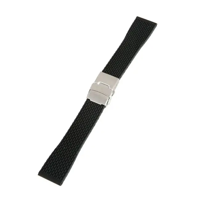 | [해외]18 미리메터, 20 미리메터, 22 미리메터, 24 미리메터 실리콘 고무 시계 스트랩 밴드 배포 버클 방수 블랙 손목 |