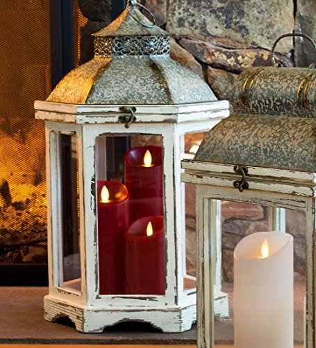 -. Feature : Wood, metal and glass lanterns / Rustic design looks like a found treasure / Fill with flameless candles, string lights or greenery / Wood frame has distressed white painted finish / Faux galvanized metal tops