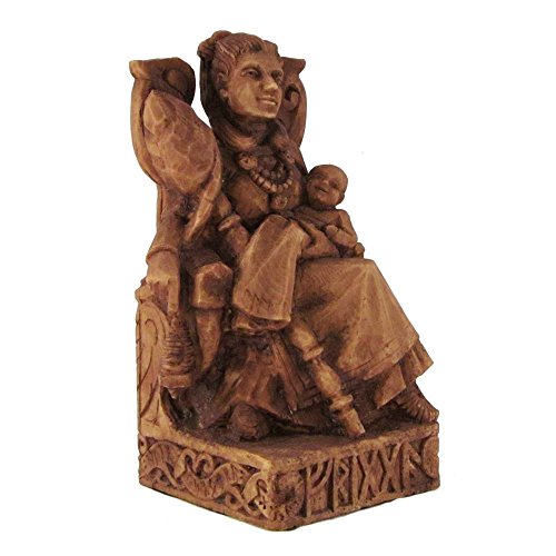 Seated Norse Goddess Frigga Statue Wood Finish