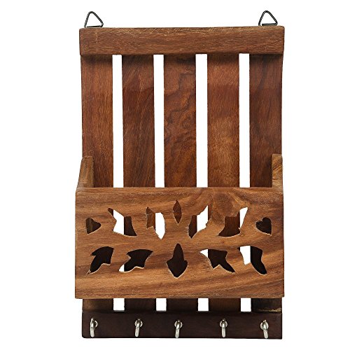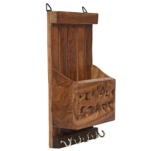 Fine Craft India Wooden Key and Letter Holder Striped Design, Brown Color Key Hangers, Used for Gift to loved ones Height - 8 inch