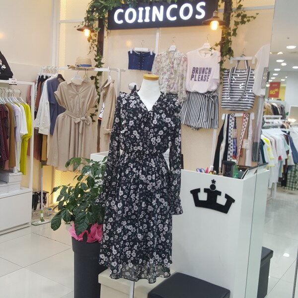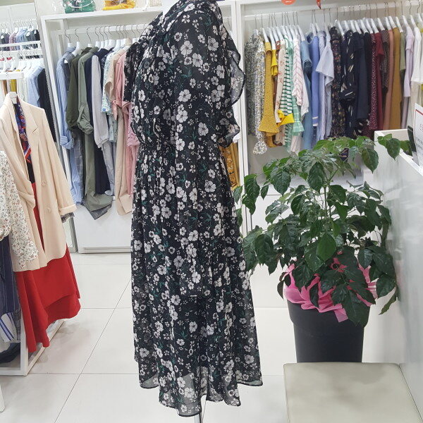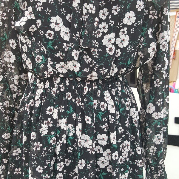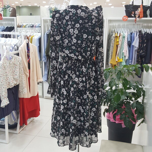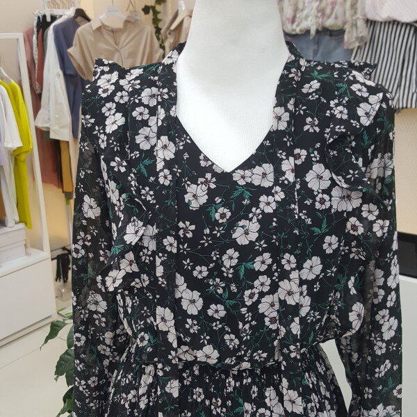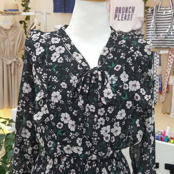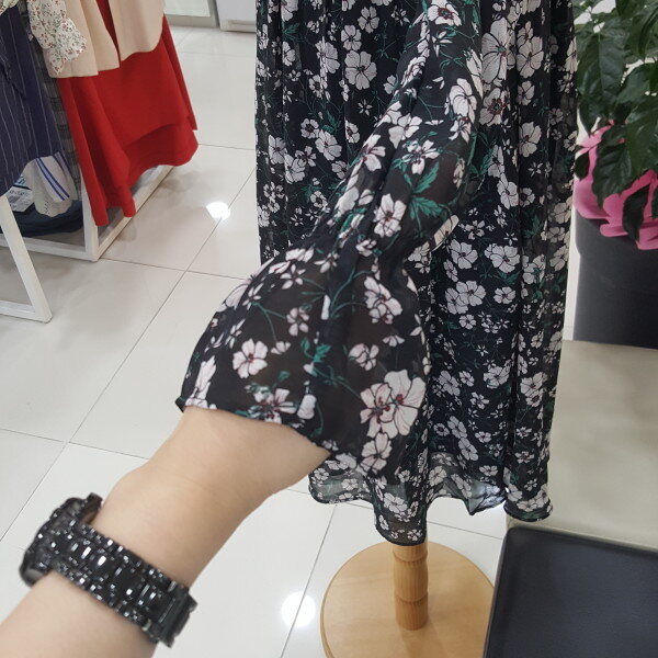 쉬폰플라워프린트 원피스 입니다긴팔스타일로 가을에 트렌치와같이 코디착용 할수있습니다(55사이즈기준 총장 109cm입니다)