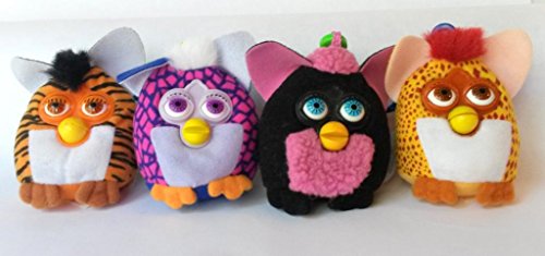 -. Binding : Toy -. Color : white and brown -. EAN : 0685256400240 -. Feature : From 2000 / Prootional plush / Cow P.R.Int! / Great gift idea -. Label : Simon Marketing -. Manufacturer : Simon Marketing -. PackageQuantity : 1 -. ProductGroup : Toy -. ProductTypeName : TOYS_AND_GAMES -. Publisher : Simon Marketing -. Studio : Simon Marketing -. Title : Furby Plush Mini Clip bundle of four - Black Woolly Attitude Eyes, Golden Spotted Mouthy, Orange Tiger Stripe SurP.R.Ise, Pink Mosaic Heart -. UPC : 685256400240