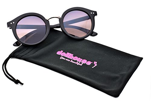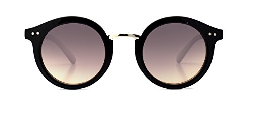 Dollhouse Women's Round Sunglasses, Opaque Black Frame with Metal Bridge, Smoke to Brown Lens, 47mm