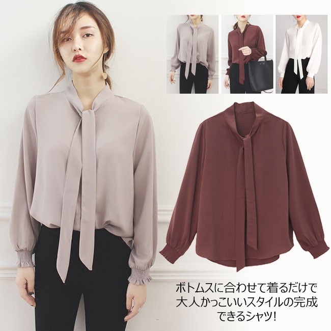 | 商品名 | シフォンシャツ シフォンブラウス レディース リボン付き トップス インナー オフィス 長袖 厚手 無地 シャツ 通勤 就活 OL 着痩せ 春 2018春新作 |