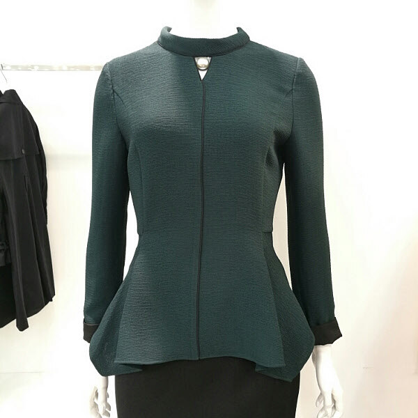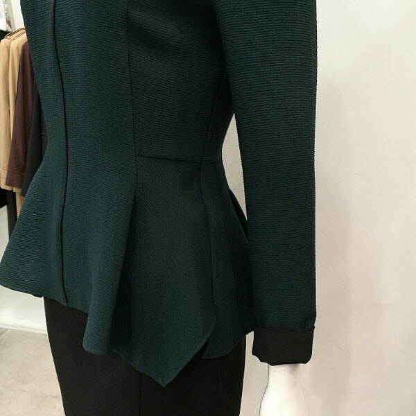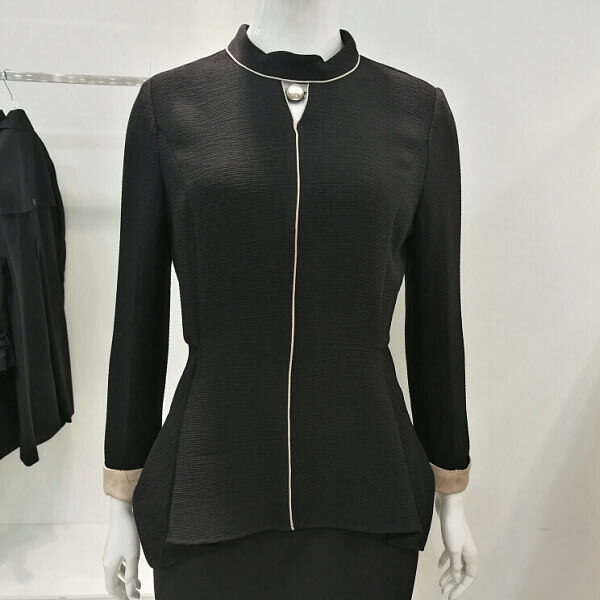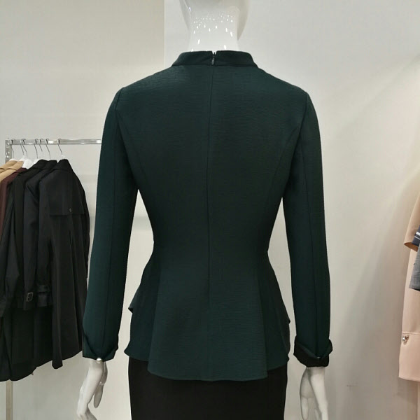 목부분에 달린 진주가 포인트이며 허리선이 지그재그로 처리돼있어 세련되었고 배부분이 커버가 되는스타일이다.