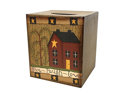 Tissue Box Cover - Primitive House / Home with Weeping Willow Tree and Saying "Live ~ Laugh ~Love"- Perfect for Primitive and Country Decorating