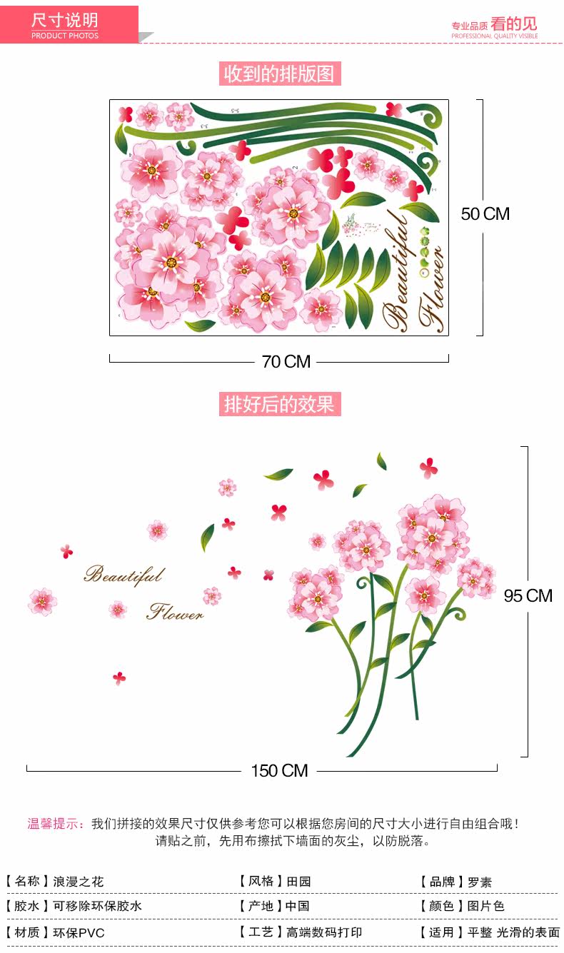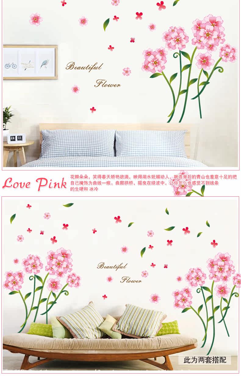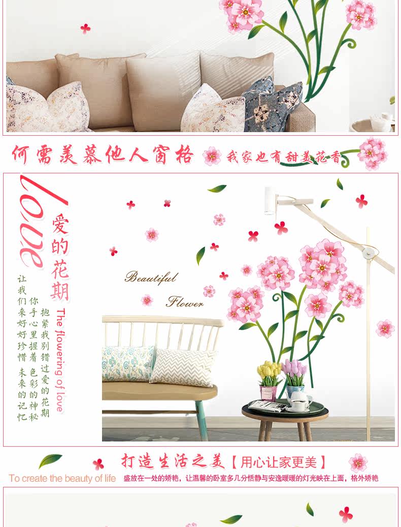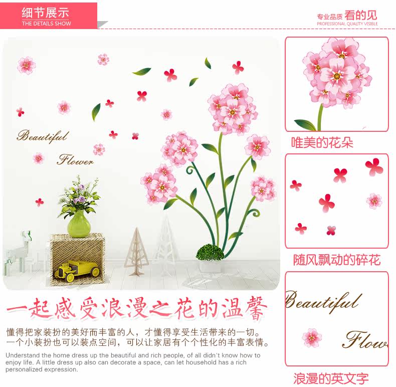 浪漫花可移除墙贴 温馨客厅电视背景墙装饰卧室床头贴画贴纸自粘
