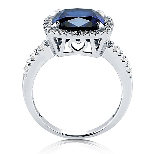 -. Title : BERRICLE Sterling Silver Cushion Simulated Blue Sapphire Cubic Zirconia CZ Halo Cocktail Ring