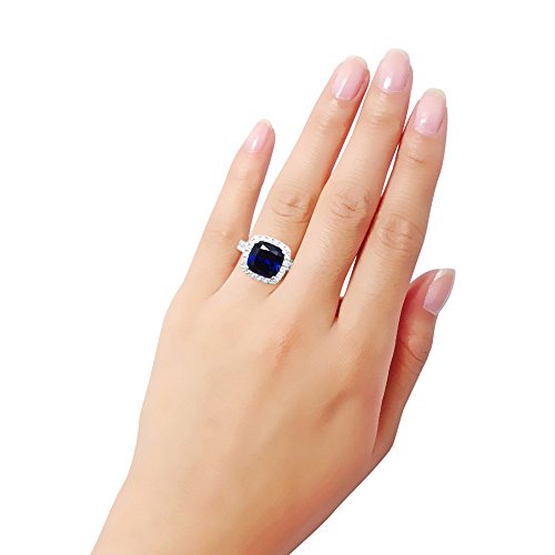 -. Feature : Metal: 925 sterling silver, rhodium plated, nickel free / Main Stone: cushion cut simulated blue sapphire cubic zirconia (3.61 ct.tw; 9.75mm) / Accent Stone: cubic zirconia (0.5 ct.tw) / Band Width: 2.5mm