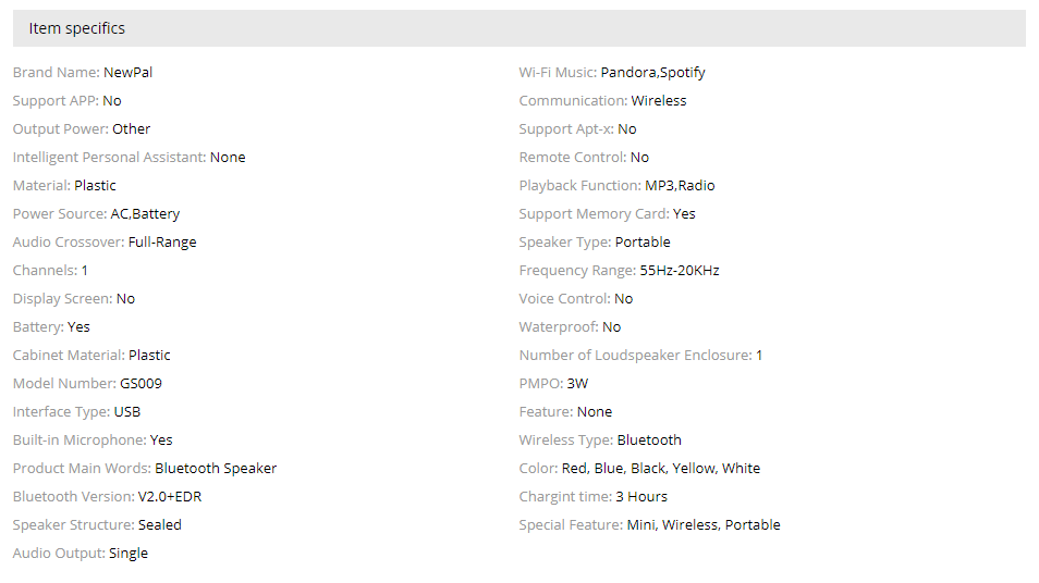 Bluetooth Version:u0026nbsp;V2.0+EDR