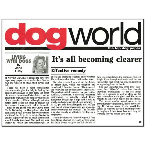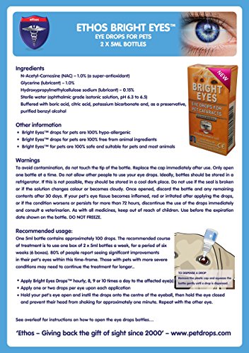 -. Feature : Ethos Bright Eyes NAC Eye Drops for Pets 1 Box & 1 x 100g Tub of Ethos Elan Vital for Pets / Ethos Bright Eyes™ Drops for Pets and Elan Vital™ for Pets Unique Combination Pack / Ethos NAC Eye Drops for Pets with Elan Vital for Pets; dogs, cats, rabbits, horses, rodents, birds e / N-Acetyl-Carnosine Eye Drops for Pets and 100% Pure L-Carnosine Powder Supplement / Original Formulation As Seen on the Richard & Judy TV Show Trials with Incredible Results!
