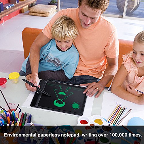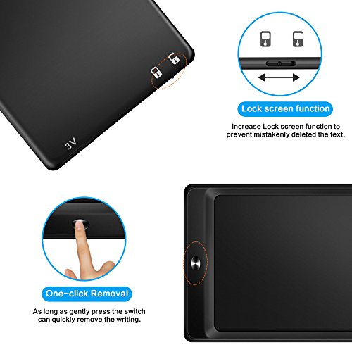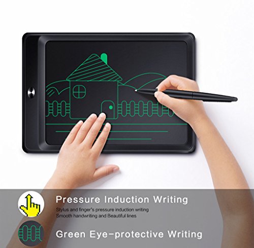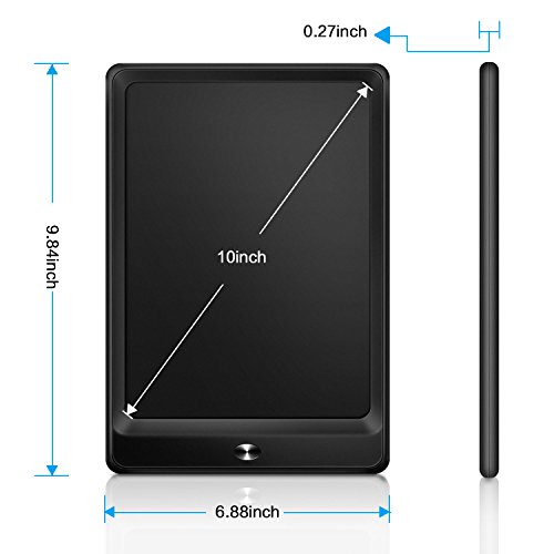 -. Feature : 【Main Functions】: Writing and Drawing on the tablet is just like on the paper. It's suit for kids writing, drawing, designers, business men, office memo board, fridge message board, deaf-mute people communication and can be used as a comunication tool. / 【Screen Lock & Erase key】: Built in lock key,easy to keep your important message/note/drawing etc, avoiding accidentally erased while you writing; One button to erase, conveniently to erase your image or word by pressing the "clear" button. / 【Portable & Easy to use】: This electronic writing board is 192g lightweight and an ultra 0.25" thin. Wherever you go, you can easily to hold and store in your scheduler, briefcase or backpack. / 【Environmentally and Eye-friendly】: Environmental paperless notepad, writing over 100,000 times. No more worry about wasting paper and killing trees; 10 Inch LCD screen, no radiation, no glare, all protect your eyes and safe for school use and all around the house, office, even car. / 【Pressure-sensitive Screen】: The tablet's pressure-sensitive LCD writing surface creates lines of different thickness based on how hard you push. Erase your image with the touch of a button - and a friendly flash from the liquid crystal display. ★We stand behind our products 100% with 45 Days Money Back, One Year Guarantee and Friendly, Easy-to-reach Support.