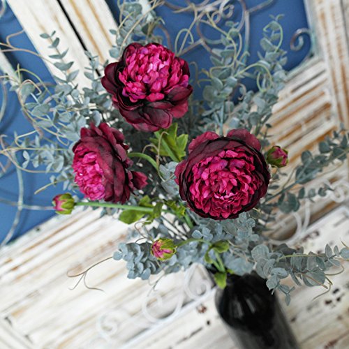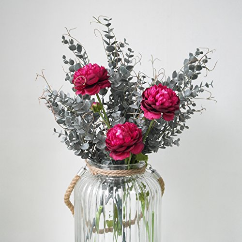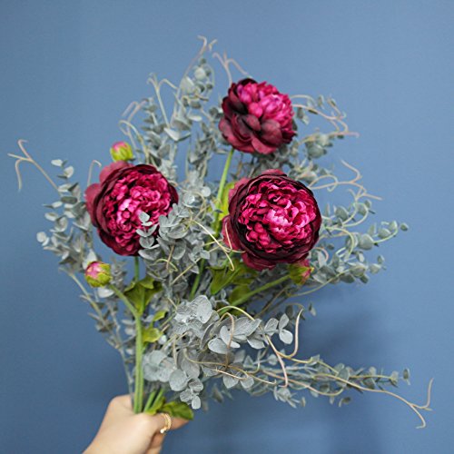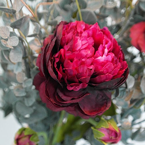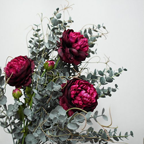Le Petit Maison Artificial Flower Ranunculus(Red) & Artificial Plants Eucalyptus (Grayish Green) Bouquet for Home Garden Wedding Office DIY Decor