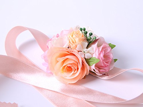 Pretty bridesmaid wrist Corsage Rose Flower Wedding Bridal (Old rose)