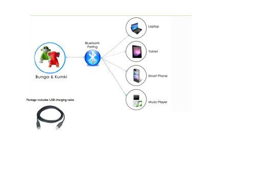 Feature : Connect to Smart phone,Tablet or any Bluetooth Enabled Device: Bunga pairs and connects to your iPhone, iPad, Android, Win8, MP3 Player, Tablet, Laptop, Smart phone or any Bluetooth enabled device. / Music Mate, Hours of Story time and Play Personalized Voices: Bunga plays songs, lullabies, audio storybooks and your baby's favorite music. Record songs or stories in your own voice and Bunga will play it back to your baby making it more personalized, which would meaningfully engage and keep your baby entertained for hours. Teach your baby essential sounds, making the learning process fun and engaging. / Baby Connect and Hands Free Phone: Talk to your baby or loved ones using Bunga. Bunga comes with a built-in Speaker and Microphone. Acts as a hands free phone when paired with a smart phone. Sing a song, tell a good night story and talk to your baby by calling a phone paired with Bunga. Bunga gives you the freedom to stay in touch with your loved ones from office, car or when you are away from home. / Wireless Speaker: Use Bunga as a wireless portable speaker. Pair it with your music player and start enjoying crystal clear sound both indoors and outdoors. / USB Charging and Extended Battery Life: Bunga has a built-in Lithium Ion battery and is chargeable through USB. It gives an extended battery life and amazing standby time when fully charged.