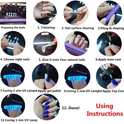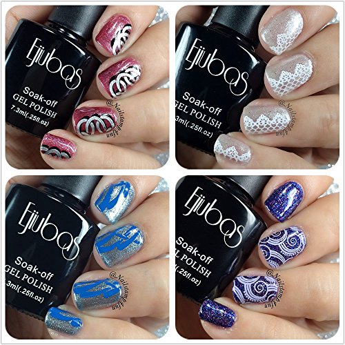 Feature : Specially formulated;Professional-grade soak off gel polish;Last longer,2-3 weeks shiny high glossy wear ;No chiping or peeling with proper usage; / UV or LED lamp required when drying;Colors may vary slightly from picture due to different lighting and screen setting; / One-stop service,full set nail polish set,necessory equipments included;Big free pack - New HOT Ejiubas artificial nails; / Free Ejiubas nail polish tutorial video support, search Ejiubas on Facebook,Youtube or Instagram site; / Customer-oriented,30 day money back guarantee,24 hours response timeframe.