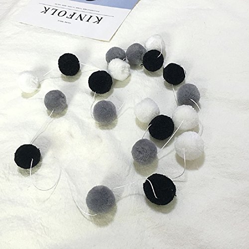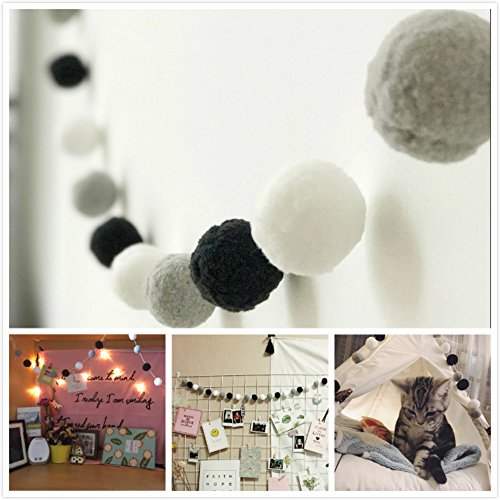 HAN-MM Handmade Felt Ball Garland By Yarn Rainbow Pom Pom Garland 2.5 cm balls Black White Grey