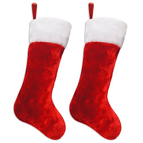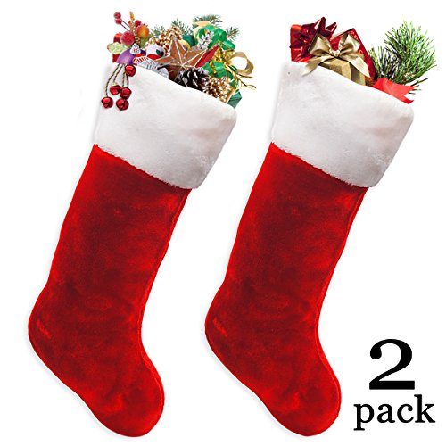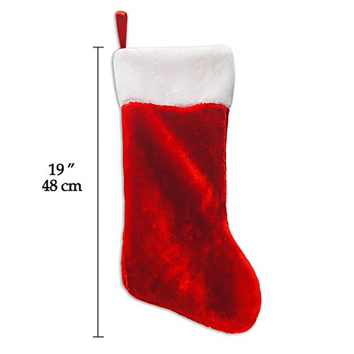 Ivenf 2 Pack 19" Classic Red & White Extra Thick Plush Mercerized Velvet Christmas Stockings Gift/Treat Bags