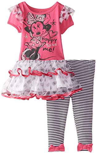 -. Binding : Apparel -. Brand : Disney -. Color : Parent -. Department : baby-girls -. Feature : Flutter sleeves / Elastic all around waist -. Label : Disney Baby -. Manufacturer : Disney Baby -. Model : P000376279 -. PackageQuantity : 1 -. ProductGroup : Apparel -. ProductTypeName : SHIRT -. Publisher : Disney Baby -. Studio : Disney Baby -. Title : Disney Baby Girls' 2 Piece Happy To Be Minnie Dress and Legging
