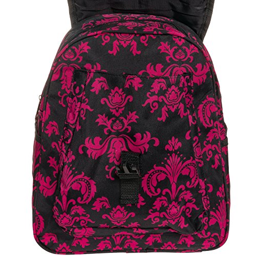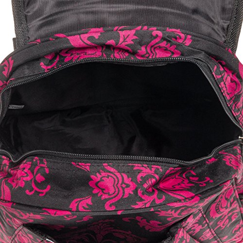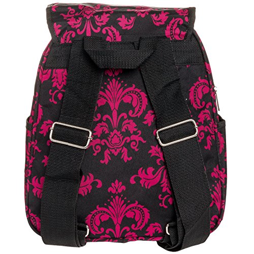 Womens 13" Damask School Travel Backpack Bag (Black & Pink)