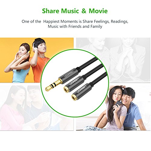 FUNCTION: Ugreen 3.5mm audio splitter Y cable 20cm connects most devices with 3.5mm auxiliary port (AUX), like MP3 player, smartphone, tablet, computer etc, to two headphones or speakers, which is a great solution to share cool music, movies and games with your families and friends.