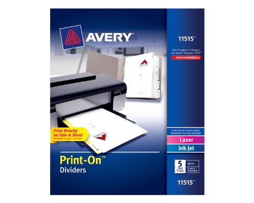 Avery Print-On Dividers, White, 5 Tabs, 5 Sets (11515)