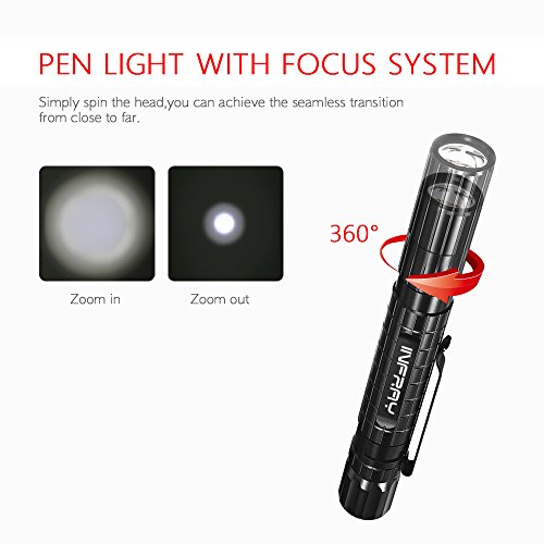 INFRAY LED Flashlight, Pocket-Sized Pen light with Super Bright CREE XPE2 R4 LED, Adjustable Focus High Lumen Pen Flashlight, Portable & Waterproof Small LED Flashlights, Powered By 1AAA Battery