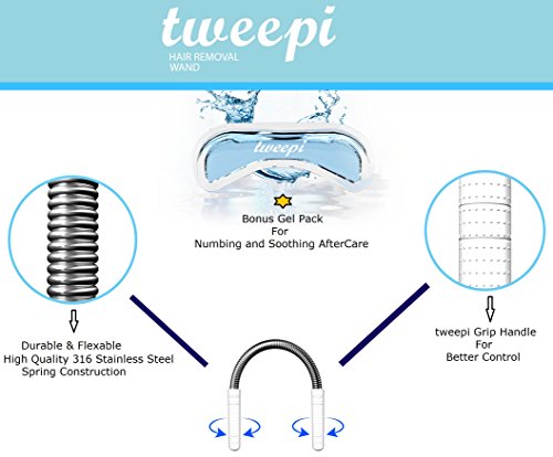 Tweepi Hair Removal Wand- With Upper Lip Shaped Cool Gel Pack for Numbing and Soothing Aftercare
