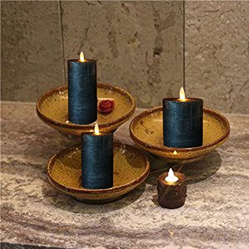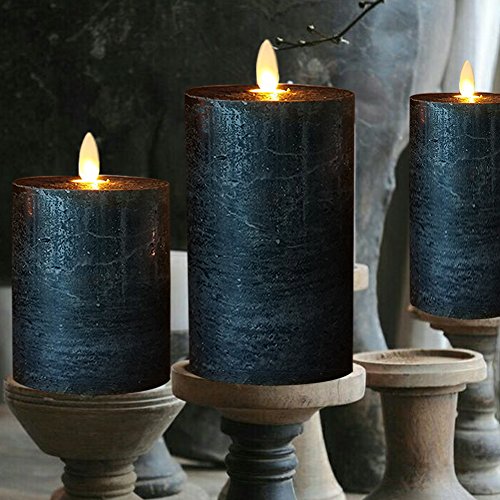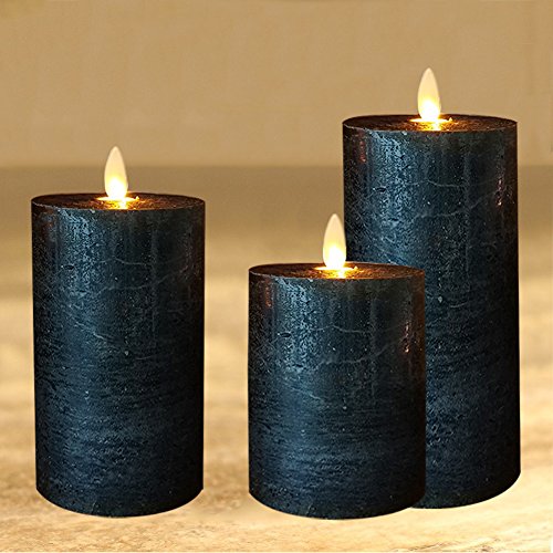 smtyle Black Flameless Candles set of 3 Battery Operated with Moving Flame Wick Flickering LED Pillar Candle,3 x 4/5/6inch