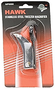 ToolUSA Curved and Pointed Tip Tweezers With 1" Diameter, 6x Power Magnifier Attached: MG-18990-Z02 : ( Pack of 2 Pcs. )