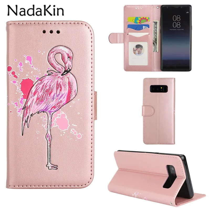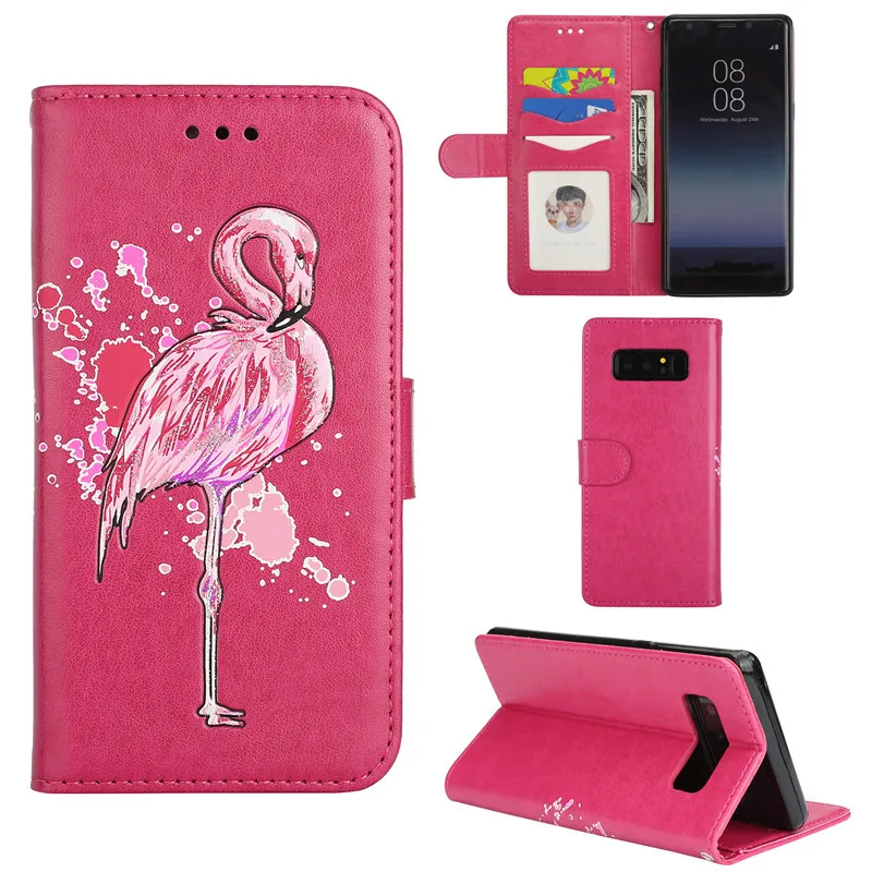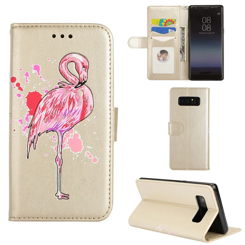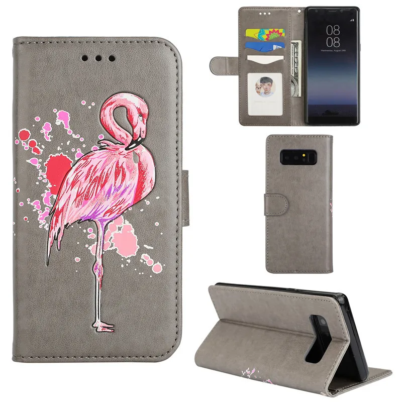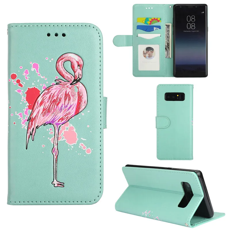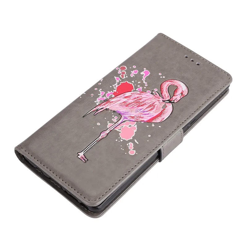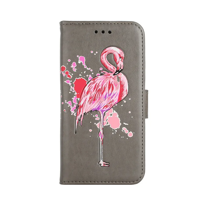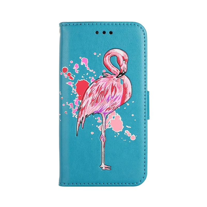 Features:Relief cartoon flamingo PU Leather Flip Case With Card Slots