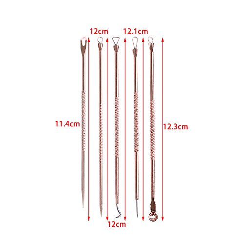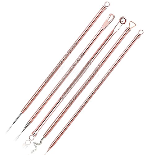 5-in-1 MULTI-FUNCTION & DURABLE Blemish Extractor Tool in Elegant Color-ROSE GOLD: HIGH QUALITY Stainless Steel Blackhead Tool, Pimple Extractor, Acne Needle, Comedone Remover, Ear Pick. For different types of skin problems, we provide targeted professional tools