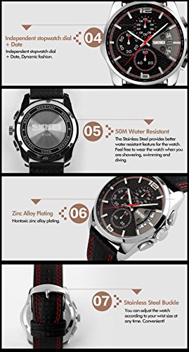 -. Feature : 100% brand new and high quality.50M Daily water resistance / Time,date,seconds dial / Durable stainless steel back,leather band. / Precise quartz movement for accurate time keeping. / Leisure Army Military design Men's watch