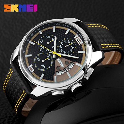 -. Title : SKMEI Brand Men Sports Japanese Quartz Date Clock Man Genuine Leather Strap Waterproof Chronograph Watch