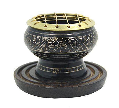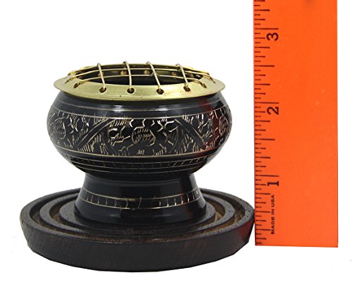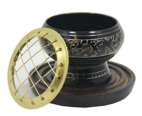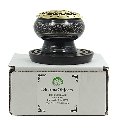 DharmaObjects Decorated Brass Charcoal Screen Incense Burner