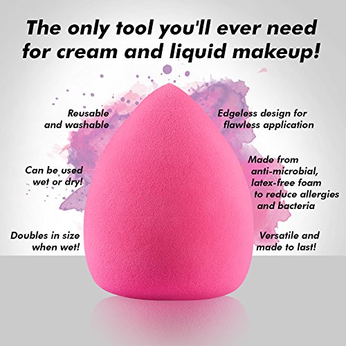 Makeup Sponge Blending Applicator Single NonLatex Foam Cosmetic Liquids, Creams, Foundation, Contouring and Shading Reusable West or Dry