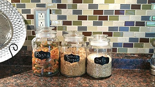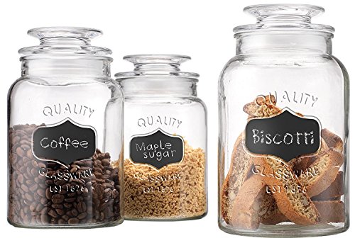 Godinger Round Clear Glass Airtight Lids Chalkboard Canister Jar Set of 3