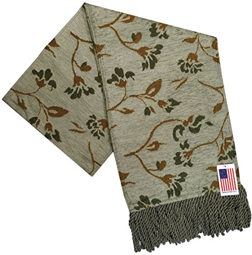 Manual Floria Floral Tapestry Tablerunner with heavy fringed edges, a sophisticated Tablerunner in beautiful shades of Green and Gold