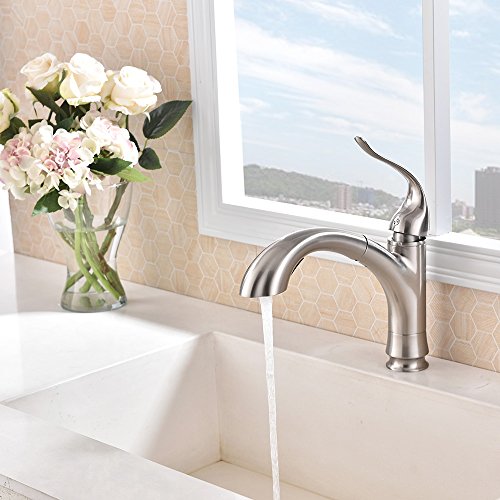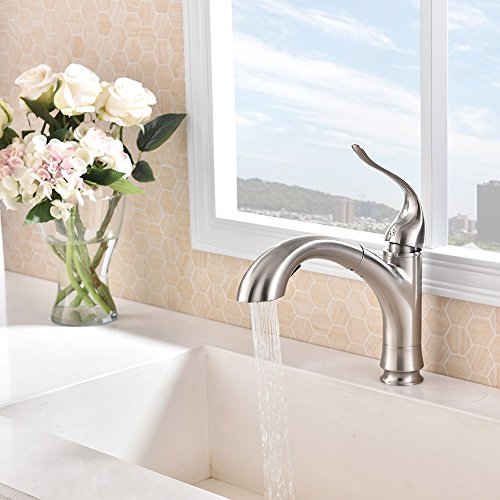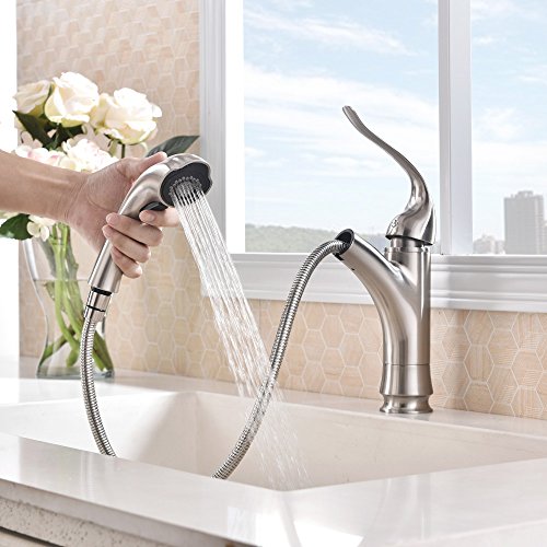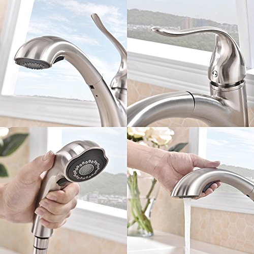 Dual Function Pull-Out Sprayer: aerated stream & powerful cleaning rinse,offer more room pots/pans and superior clearance for sink.