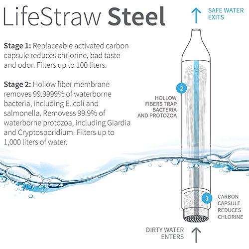 ()/Camping Hiking/Water Filtration/DIRECT FROM USA/LifeStraw Steel Personal Water Filter with 2 Stage Carbon Filtration for Hiking, Camping, Trave...