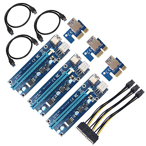 -. Brand : Shanhai -. EAN : 0758868120780 -. Feature : ITEM NAME -- Version 6 C Powered Riser Card. 6-Pin VGA Power Supply Input. / 6P POWER -- 6-pin PCI-E power to 15-pin SATA power cable for direct connection to your power supply reduces the power burden on your motherboard and ensures maximum compatibility with your power supply. / MINING RIG -- The perfect solution for setting up Ethereum mining rigs, whether small open air rigs or large rack based miners. / SAFETY -- 4 High Quality Solid Capacitors, Voltage Regulation, and Overcurrent Protection. Gold plated contacts for flawless connectivity and a long lifespan. / WHAT YOU GET -- 3 Pieces PCI-E 16X Riser board. 3 Pieces PCI-E 1X Riser Adapter Card. 3 Pieces 60cm USB 3.0 Extension Cable. 3 Pieces 6-Pin PCI-E to SATA Power Cable -. IsAutographed : 0 -. IsMemorabilia : 0 -. Label : Shanhai -. Manufacturer : Shanhai -. Model : ShanhaiELET13-3-c -. MPN : ShanhaiELET13-3-c -. NumberOfItems : 3 -. PartNumber : ShanhaiELET13-3-c -. ProductGroup : BISS -. ProductTypeName : MECHANICAL_COMPONENTS -. Publisher : Shanhai -. Studio : Shanhai -. Title : 3-Pack PCIe riser cable VER 006 or Ver006C PCI-E 16x to 1x Powered Riser Adapter Card USB 3.0 Extension Cable 6pin MOLEX to SATA Power Cable - GPU Riser Adapter - Ethereum Mining ETH miner cable rig -. UPC : 758868120780