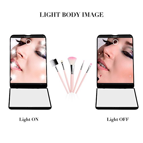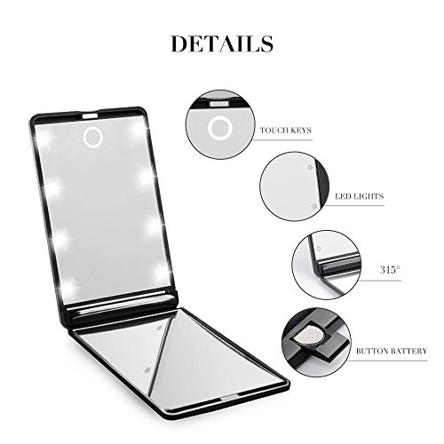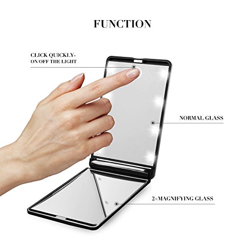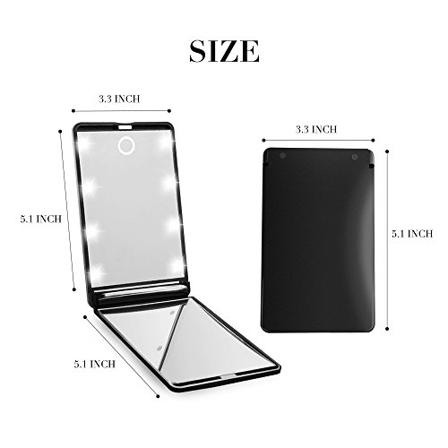 ideske Travel Makeup Mirror Ultra-thin Switch LED Mirror with 1X and 2X Magnification, Portable Folding Cosmetic Mirror with 8 Bright LED Lights...