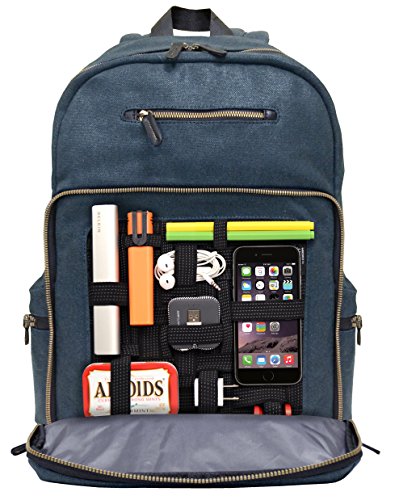 -. Feature : Padded Laptop Compartment fits up to 16" laptop with Built in 9" x 8.5" GRID-IT! Front Pocket / Dedicated Tablet Compartment, Interior Document Pocket, 2 Large Front Storage Pockets In the Grid-It compartment / Water Resistant Wax Canvas Exterior / Convenient Pocket Organizers for additional Storage with Built-In Key chain / Media Pocket Keeps Small Devices handy