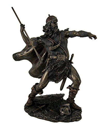 Resin Statues Viking Warrior In Armor Throwing Spear Decorative Bronze Finish Statue 8 Inch 7.5 X 7.75 X 6 Inches Bronze