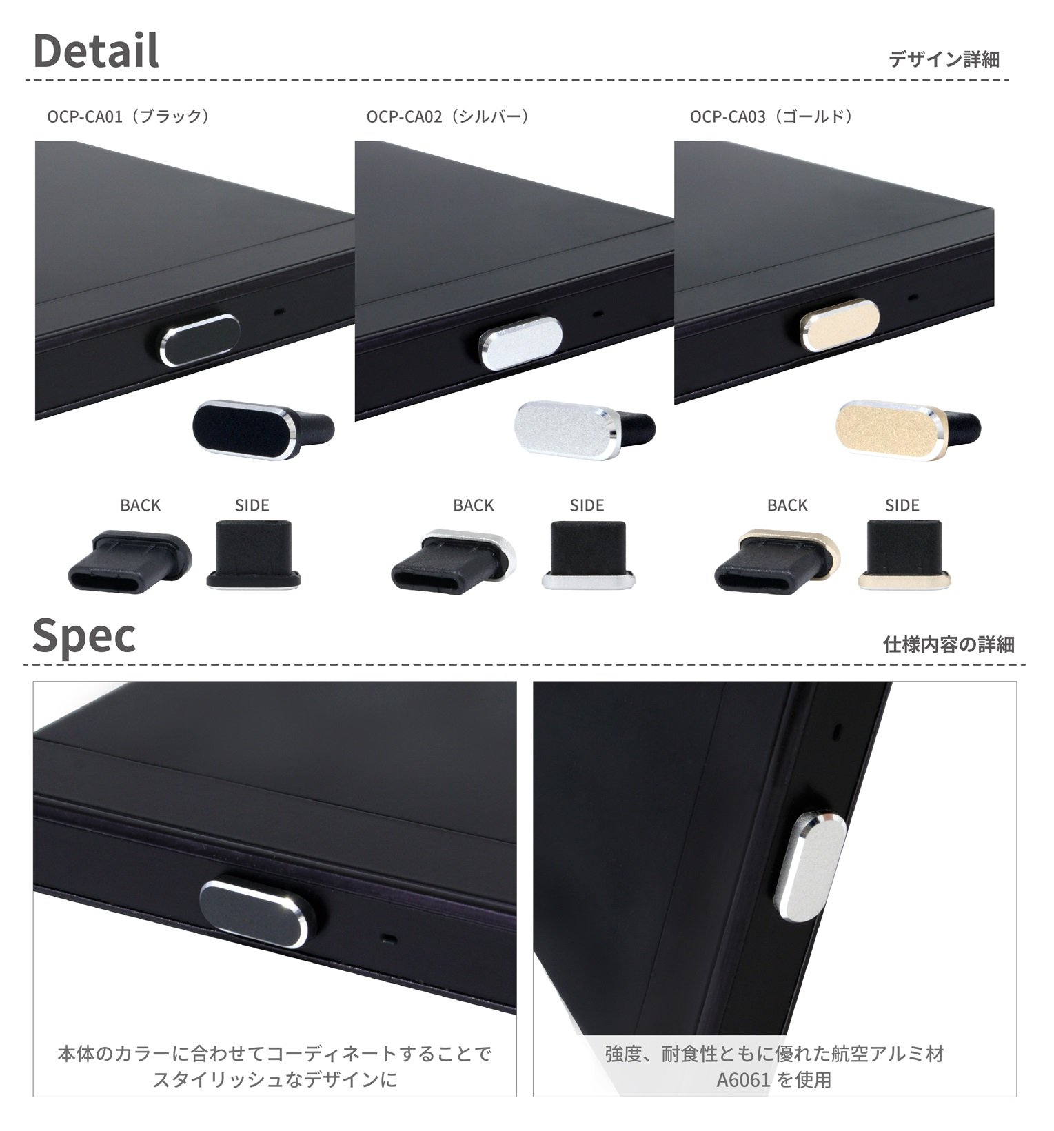· Simply by inserting it into a connector of a smartphone or the like, not only can it prevent dust, but it also produces a smartphone beautifully Aluminum Type - C Cap!
