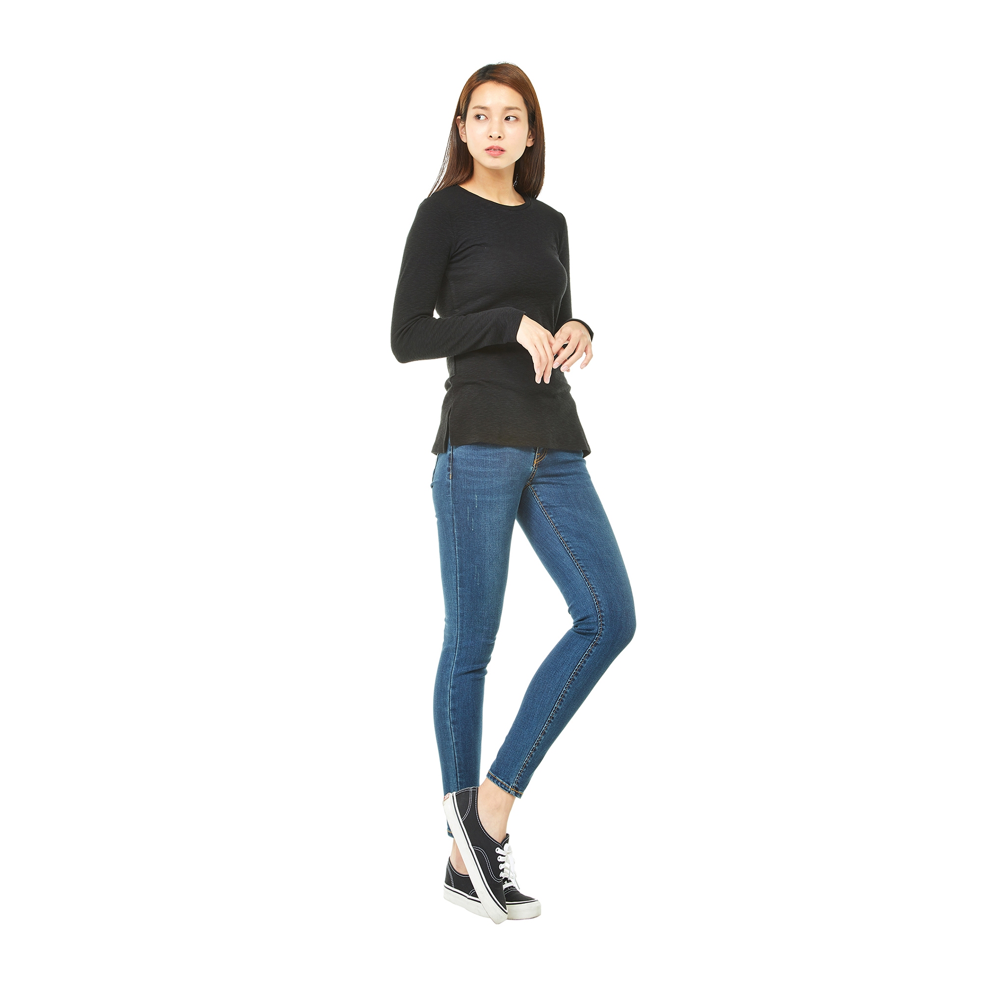 컬렉션 : 2017 Fall/Winter 디자인 포인트 : - 슬럽 원단에 스판 원사가 함유된 티셔츠로 좋은 신축성을 자랑하는 아이템- 라운드넥 디테일의 베이직한 디자인- 데일리로 스타일링 하기 좋은 활용도 높은 아이템- 면 혼방의 소재로 부담없이 착용 가능한 상품 스타일링 추천 : 베이직한 스키니핏의 데님팬츠와 스니커즈를 매치하여 심플한 데일리룩 스타일링을 연출 할 수 있음