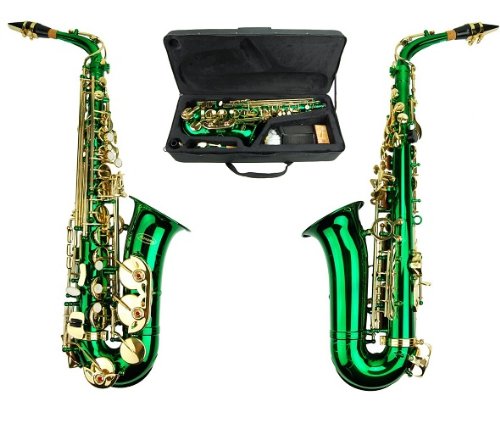 Merano E Flat Green Alto Saxophone with Zippered Hard Case + Mouth Piece,Screw Driver, nipper. A pair of gloves, Soft Cleaning Cloth