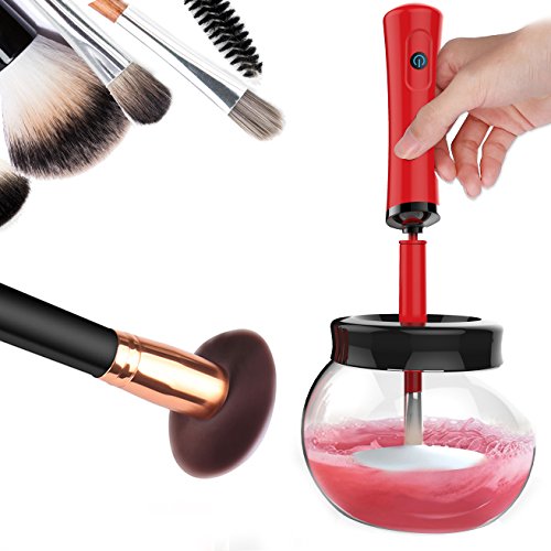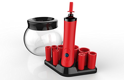 TJ.MOREE Electric Makeup Brush Spinner With 8 Silicone Collars - Wash and Dry in Seconds Version 3.0 (Red)
