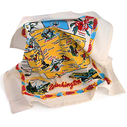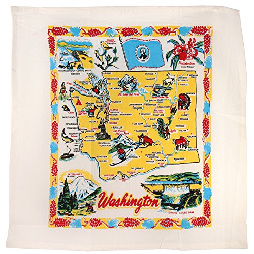 - Genuine flour sack kitchen dish towels printed with the state maps and features.