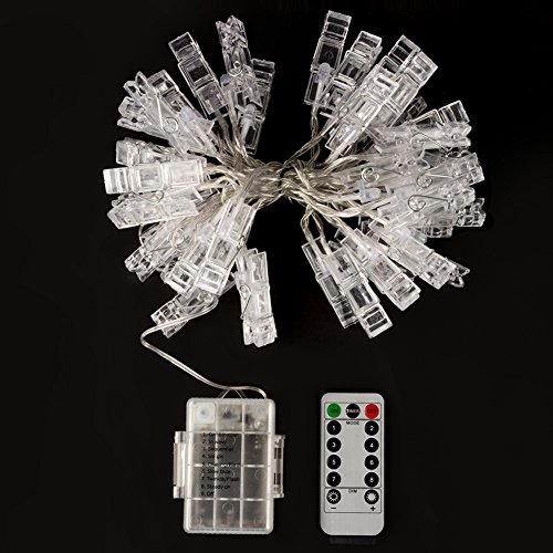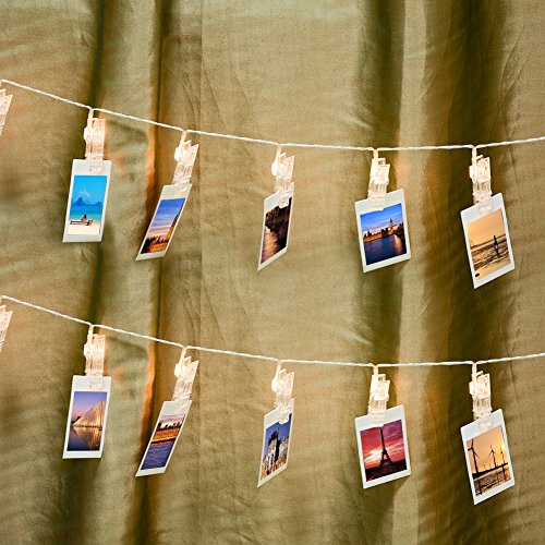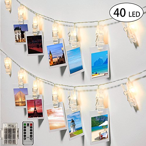 - [DIY Decoration] The string light in length of 13.2ft / 4m has 40 clear clips with micro LED bulb inserted, which is perfect for hanging photos, small cards and artworks in bedroom, living room and wherever you want more atmosphere.